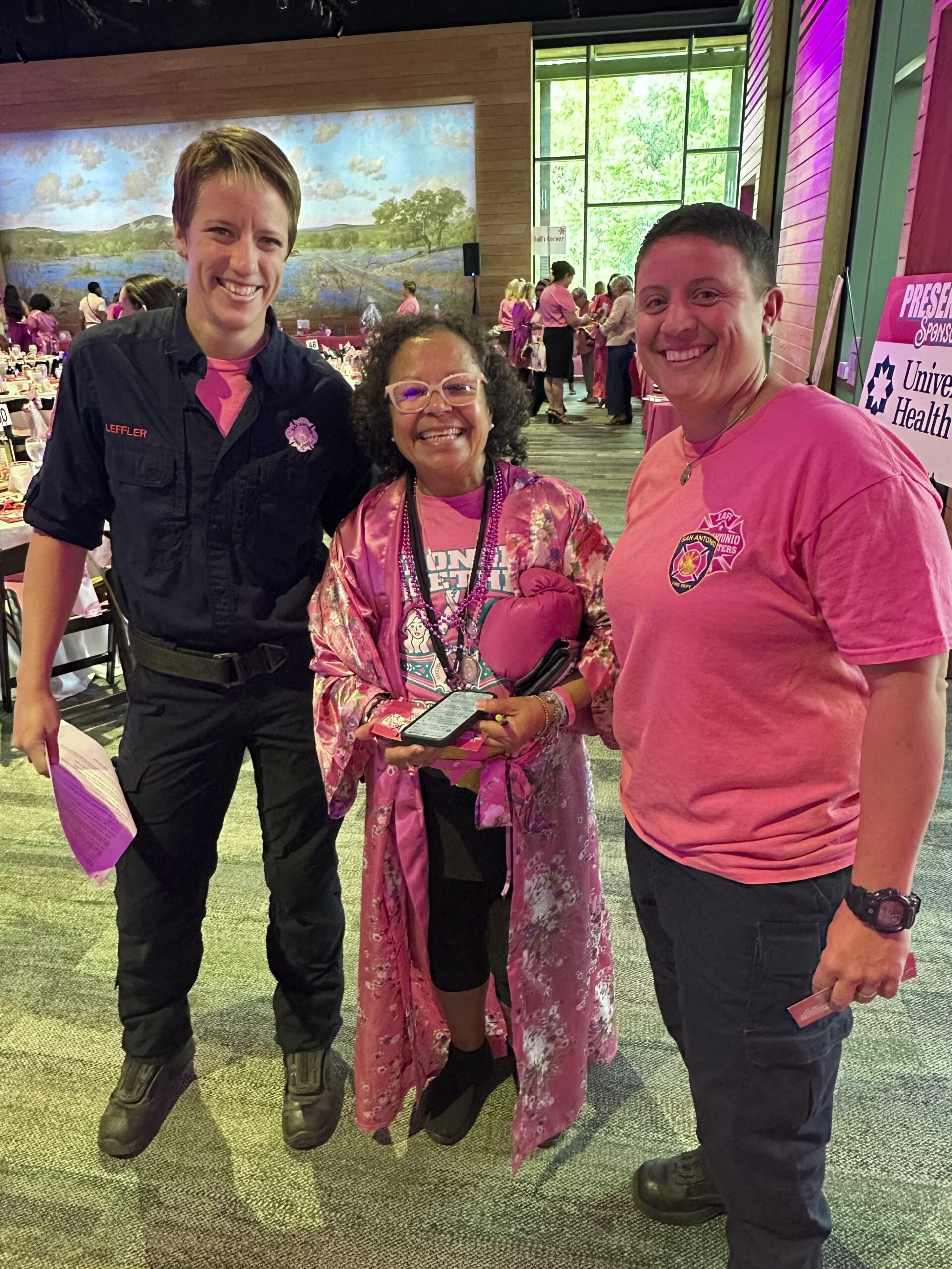 - Maria in the middle. At the Pink Party.